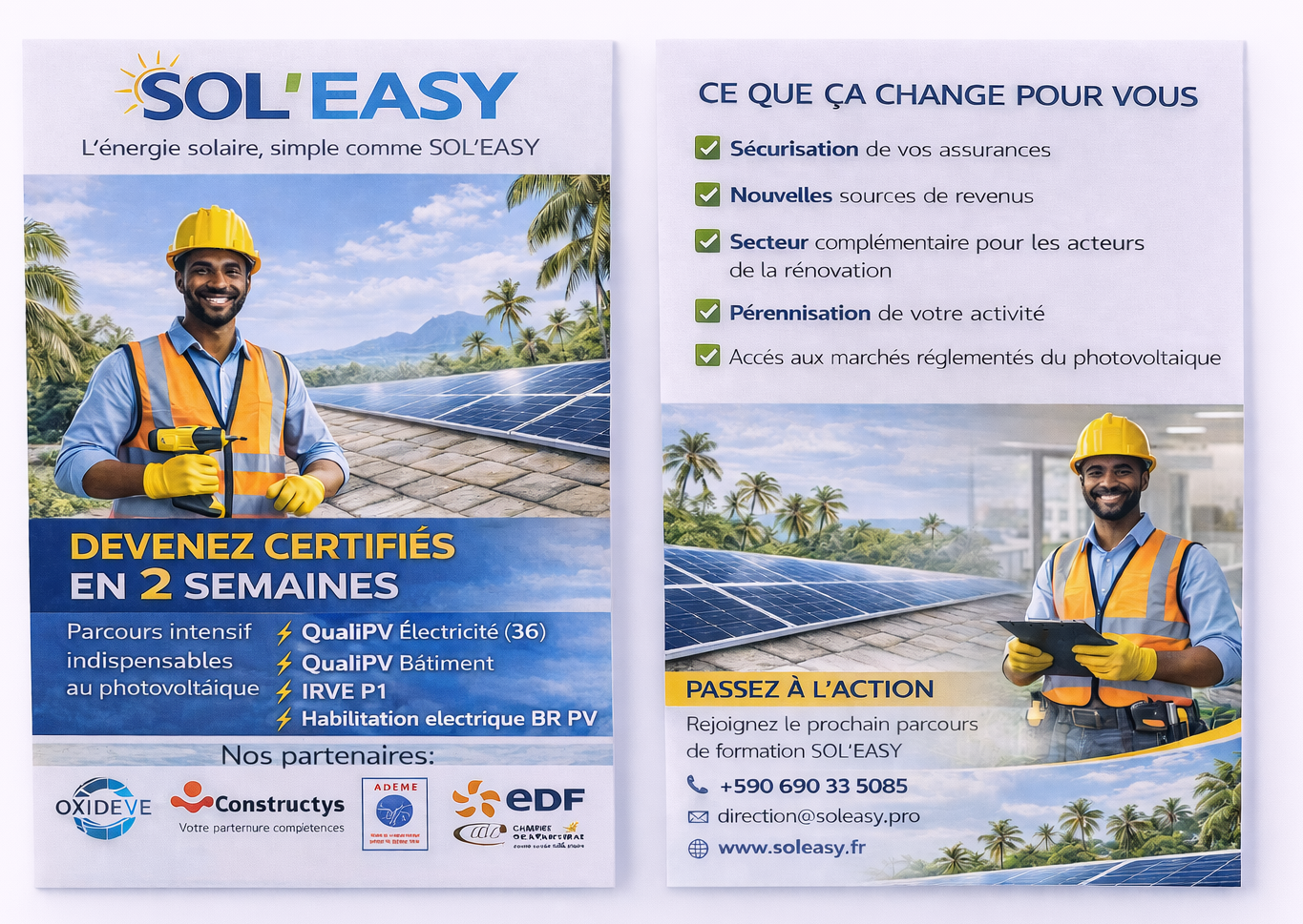 La collaboration entre OXIDEVE et SOL’EASY garantit des formations directement connectées aux exigences du terrain, permettant aux stagiaires d’acquérir des compétences immédiatement mobilisables en installation photovoltaïque