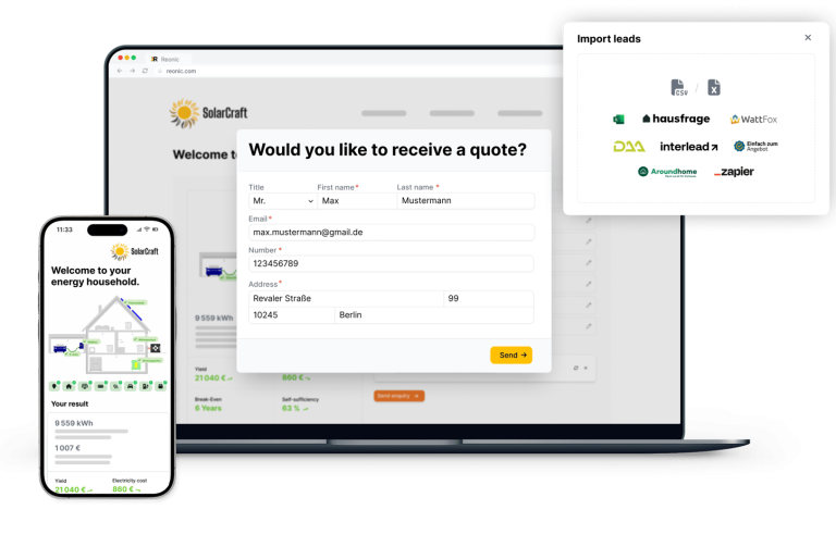 une plateforme tout-en-un qui permet aux installateurs et bureaux d’études en énergies renouvelables de vendre plus vite, dimensionner plus précisément et piloter leurs projets dans un seul outil, du lead jusqu’à l’installation.